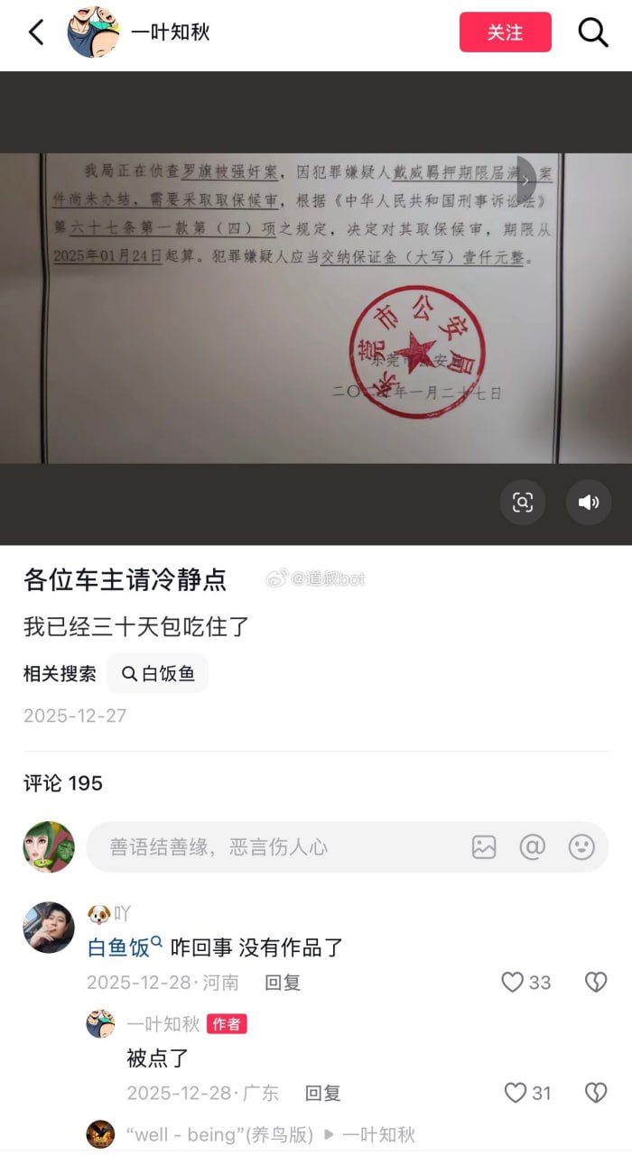 网友爆料,被老婆告强奸,进去待了30天。目前取保候审!